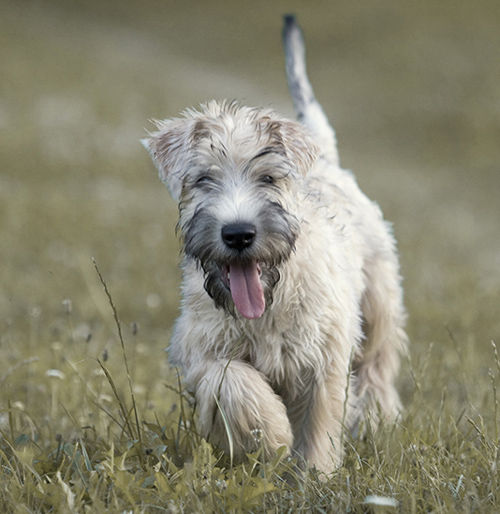 A Irish Soft Coated Wheaten Terrier foi uma das raças prediletas dos camponeses europeus no século XVII, usada posteriormente para caça, pastoreio e guarda. Este cão é considerado o terrier mais dócil e menos agressivo de todos, embora tenha gosto por perseguir pequenos animais. De adestramento considerado moderado, é popular nas casas da América do Norte. Chegando a atingir 21 kg, costumam ter até dez filhotes por ninhada, o que lhe garante uma população numerosa.